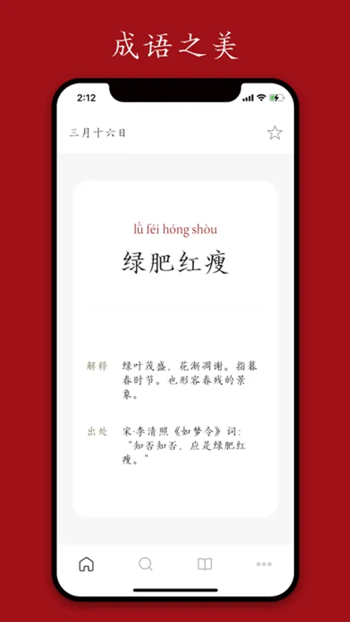 成语大词典,提供权威的成语查询、成语用法学习等功能,共收录成语三万余条,每条成语都包含释义、出处、例子、成语接龙等知识,界面简约美观,还提供有趣的成语典故, 带你领略成语魅力。