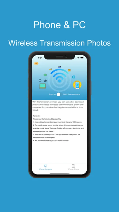 Support downloading photos and videos from the mobile phone to the computer or uploading them from the computer to the mobile phone under the same wireless network;
