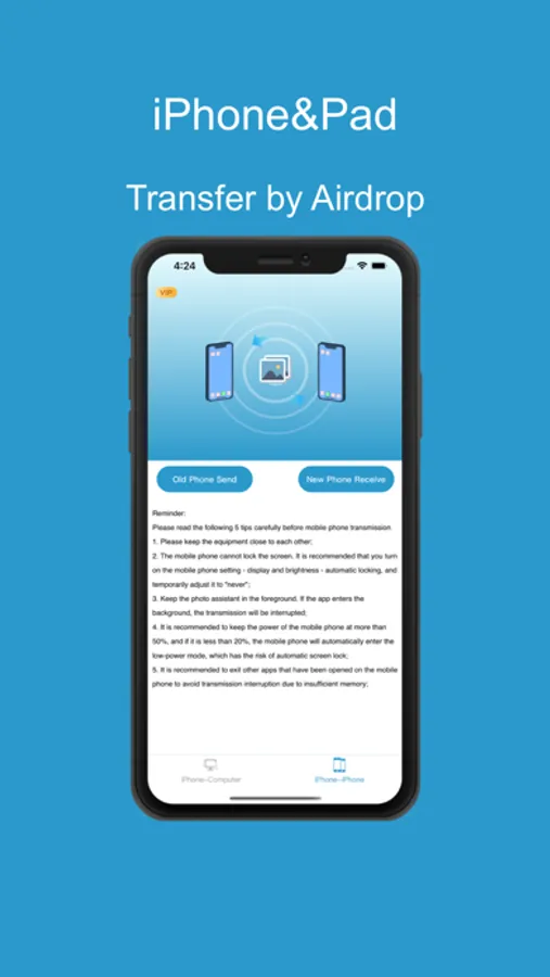Support two mobile phones to transmit videos and photos in mobile phones at high speed without network environment;