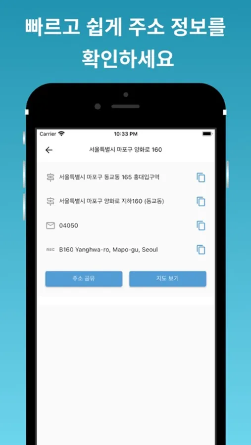 간단히 주소를 찾고 , 공유할 수 있습니다.