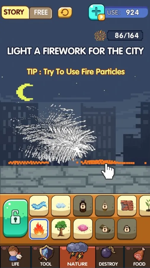 In the free mode, you can match various particles as you like; in the story mode, you can also