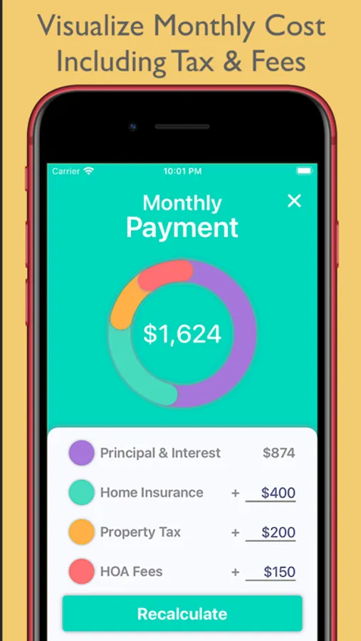 √ Determine your true monthly payment by including Tax HOA fees and PMI