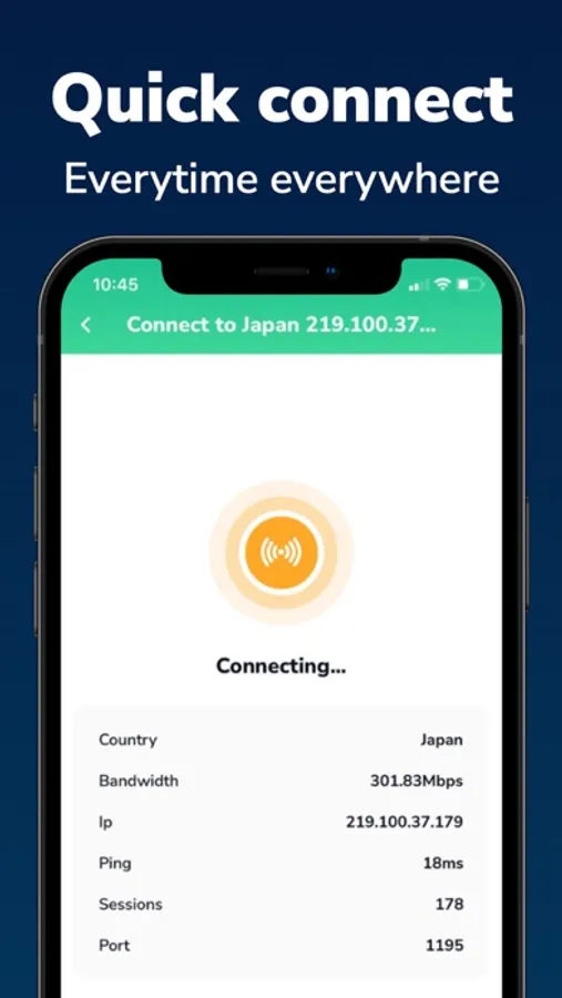 It’s our fastest VPN protocol built on the backbone of OpenVpn to bring you blazing speeds and bulletproof privacy. All you need to do is tap “Quick Connect” – you’ll be connected to one of our 1000+ servers in seconds.