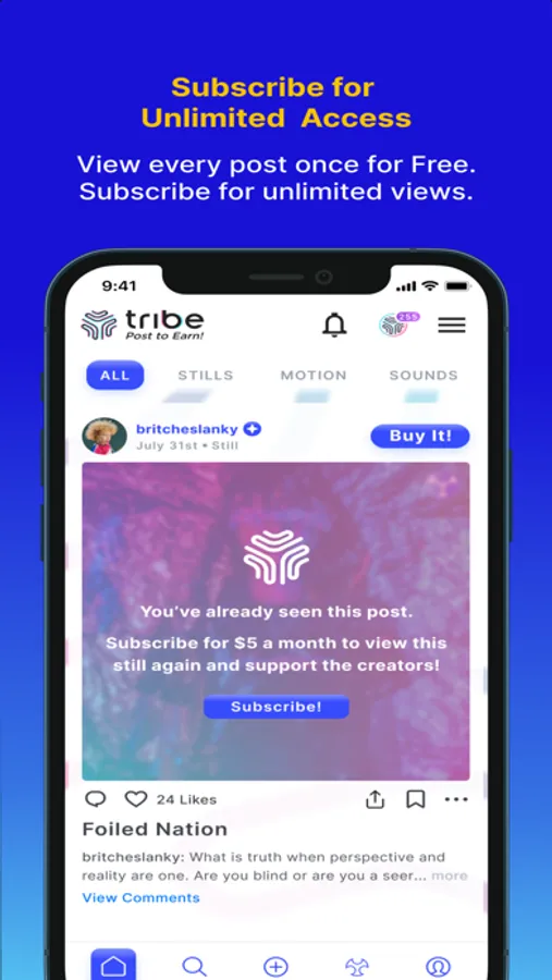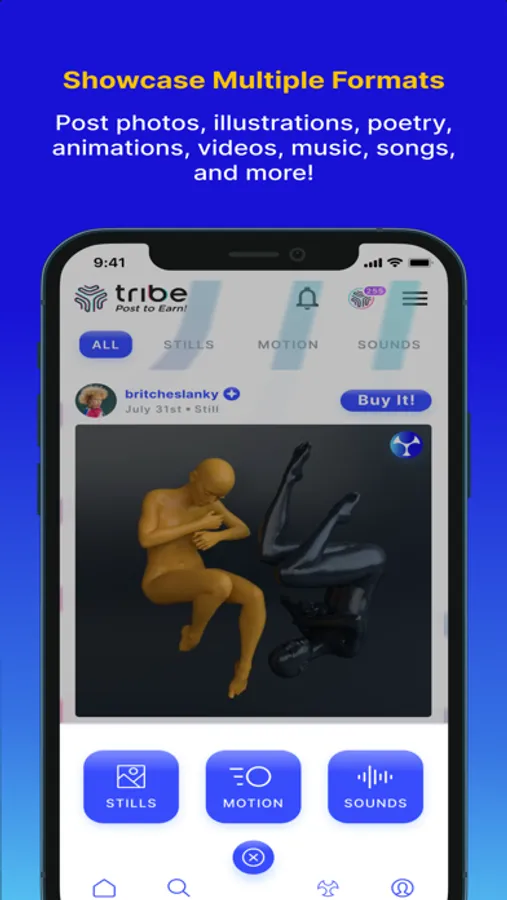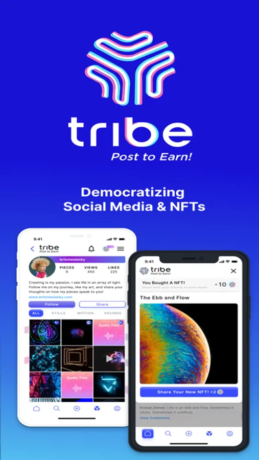 Tribe is a social NFT app that allows creators to monetize every post. With Tribe, you can Post to Earn! Unlike other social media apps that exponentially profit from their users‘ content, Tribe democratizes social media by placing the control—and profit—into its users’ hands. The primary way to earn money on Tribe is to sell your post as an NFT. When you publish your post, it is made available for other users to view, buy, or engage with through likes or comments.