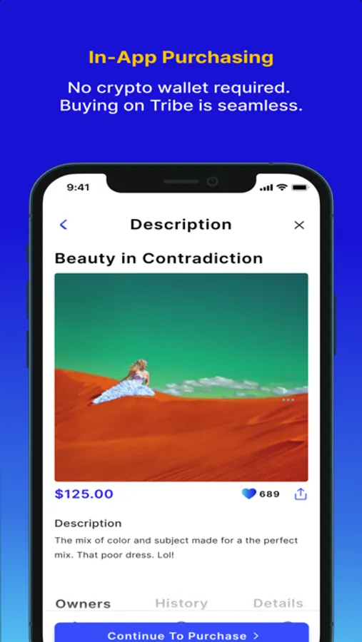 Users can sell and buy on our app via in-app purchases. Additionally, transactions will be processed in the user’s local fiat currency as opposed to cryptocurrency. This makes Tribe accessible to all users and particularly to the everyday user. No need to create or manage a crypto wallet to use Tribe!