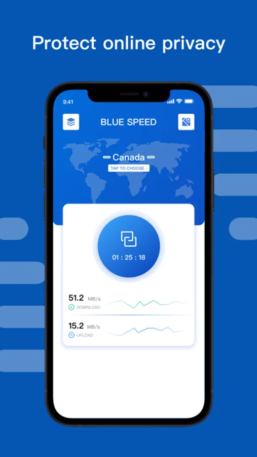 Our state-of-the-art service encrypts your activity to keep strangers and hackers out of reach. Connect your devices instantly with the Blue Speed app for privacy and security anytime, anywhere.