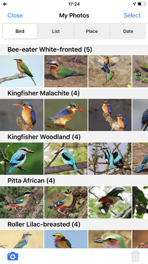 MY PHOTOS album links your photos to sightings and lists, and displays your photos on the bird pages.