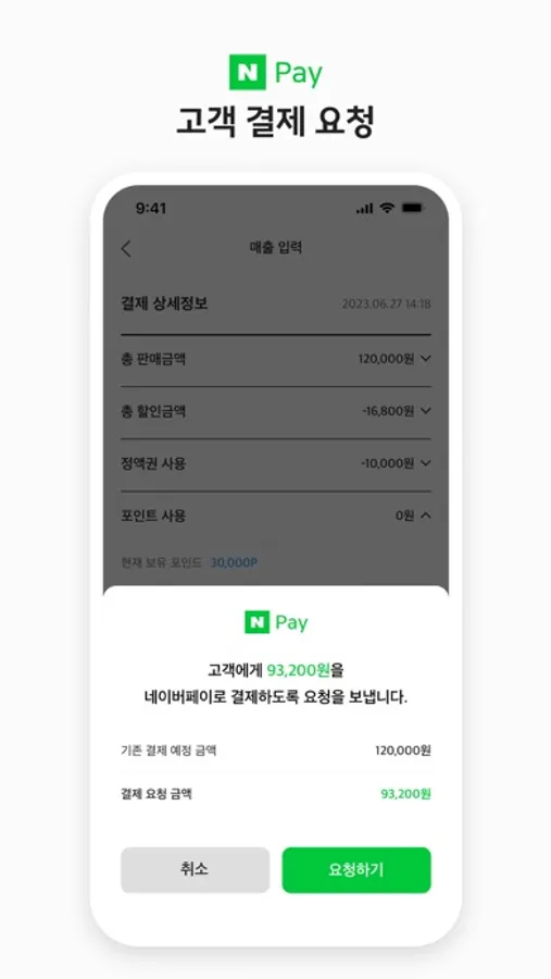 ・ 네이버예약을 통해 방문한 고객께 네이버페이로 결제 요청을 할 수 있어요.