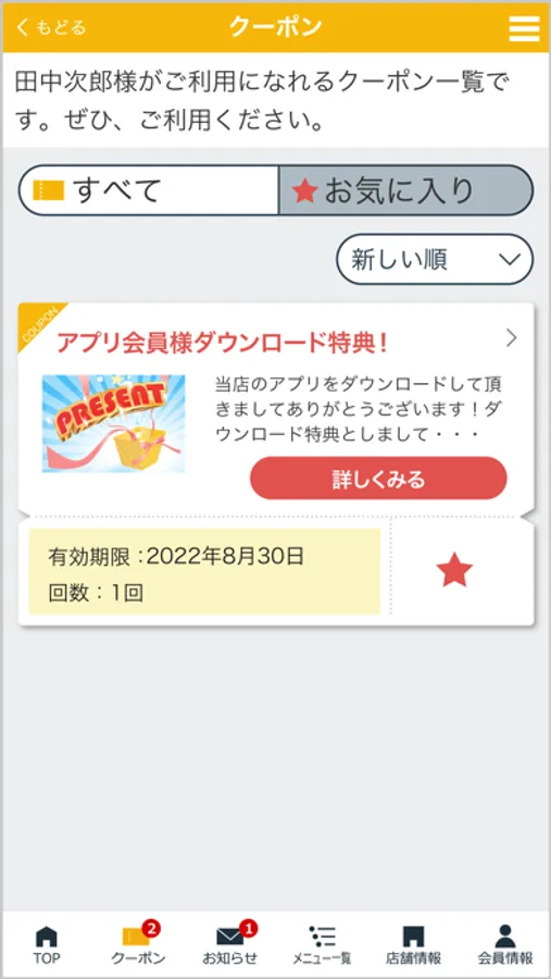 また、決められたスタンプ数を貯めるとお得なプレゼントクーポンと引き換えができます。