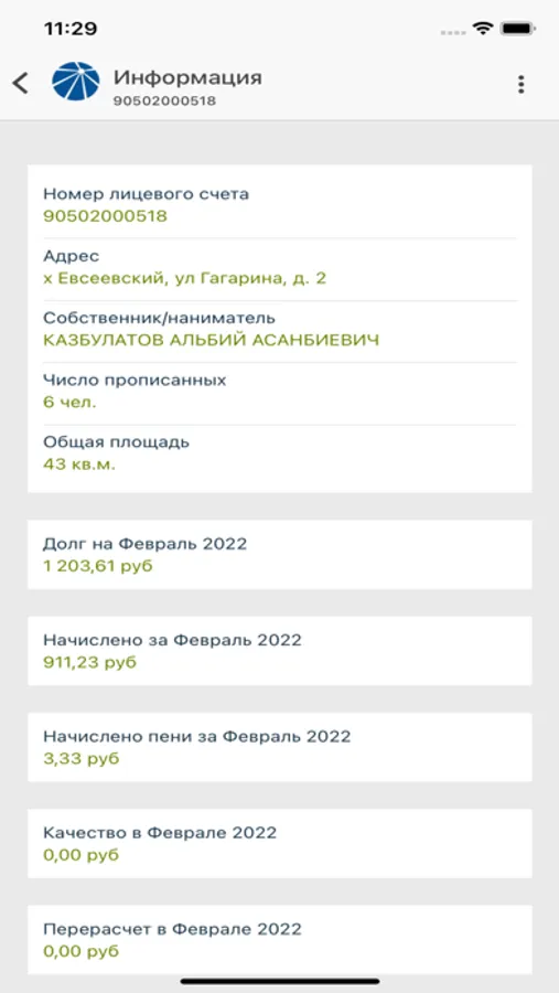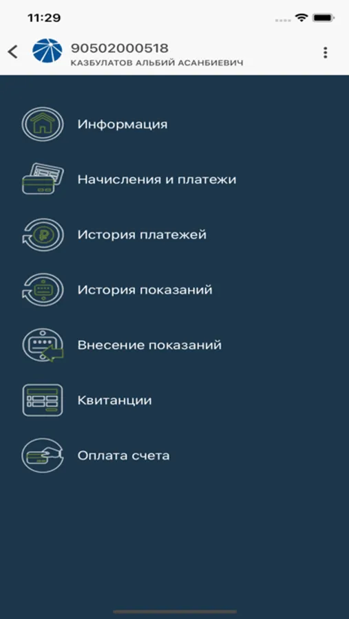 - Возможность передачи показаний по счетчикам или просмотреть переданные ранее показания;