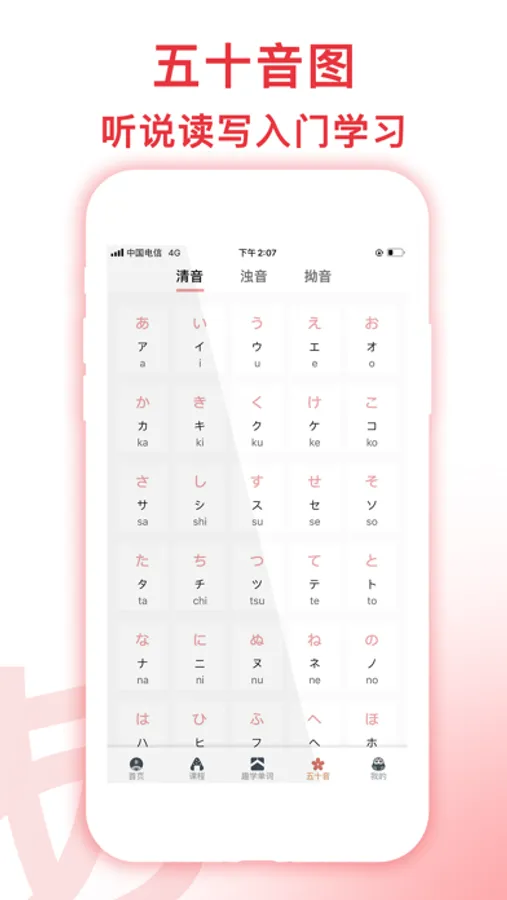 【五十音图】:日语录音跟读,日语手写笔画,日语发音技巧。