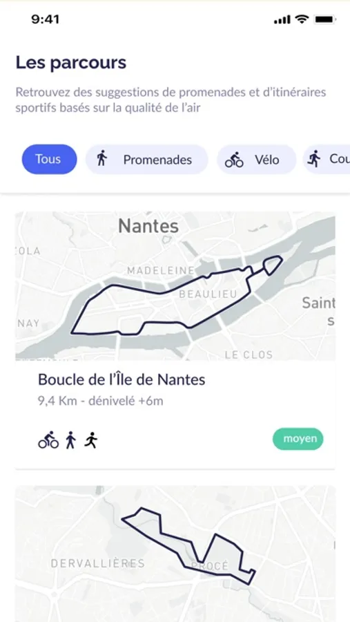 - Découvrez des parcours sportifs et des promenades : respirez un air meilleur en choisissant le bon endroit et le meilleur moment pour vos activités et sorties sportives. Respirez, bougez !