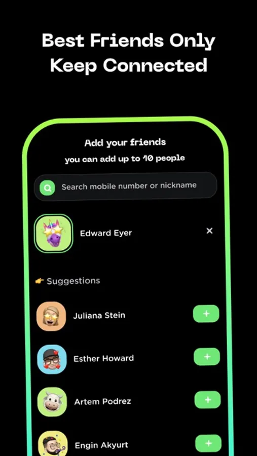 • To keep things friendly, you can only add up to 10 friends on the app.
