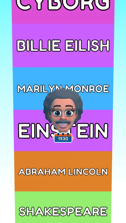 Watch your character change through time. Can you recognize the famous faces looking back at you? Can you see yourself reflected in the eyes of the wisest ape?