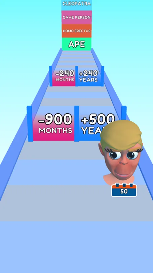 Calculate the optimal choice to bring the year forward and evolve your avatar. Watch the platform ahead and navigate through the gates that will give you a great leap forward!