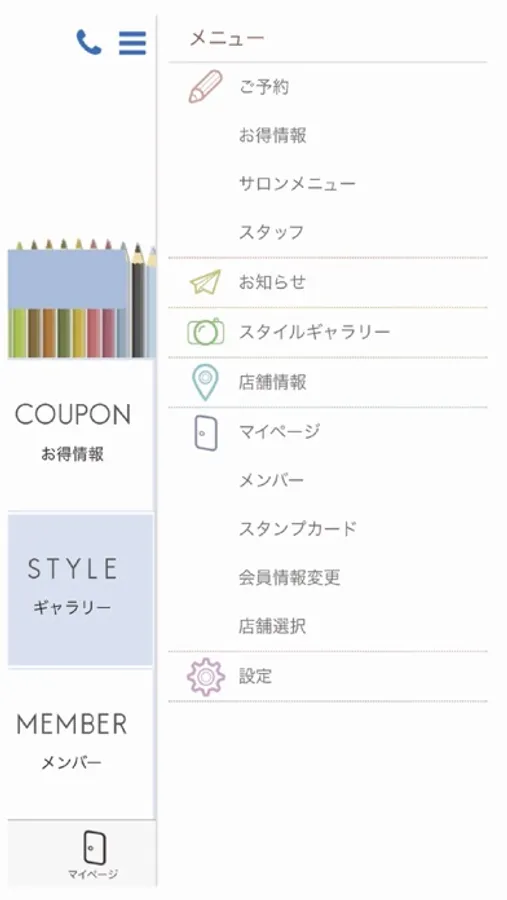 ▼マイページ機能で来店履歴や予約履歴がポイント保有数が確認できます。