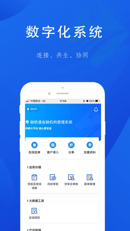 通:机构与机构、机构与助贷/中介业务互联互通。
