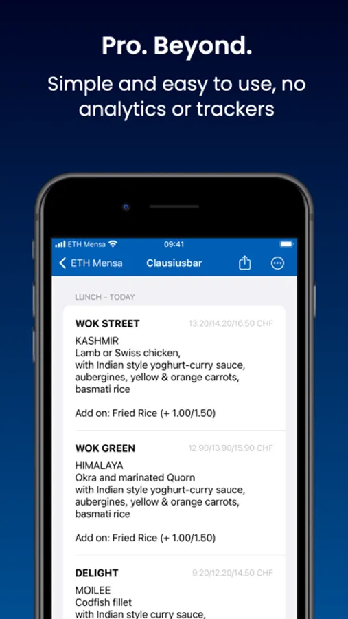 Have you ever wanted to see the menus of ETH Zürich (Zentrum/Hönggerberg) and UZH (Zentrum/Irchel/etc.) Mensas in a clean and easy-to-understand app? Without any trackers or app analytics like other similar apps? Then you're just right!