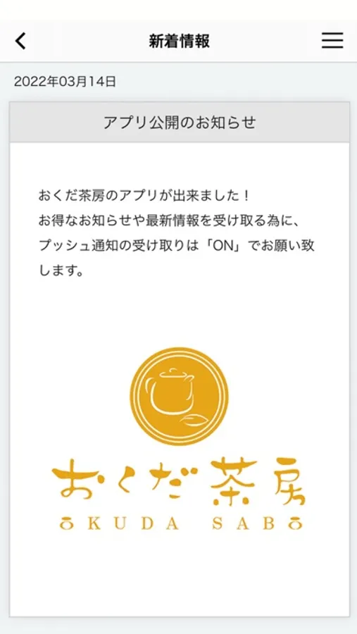 ・【おくだ茶房/おくださぼう】からの最新情報をプッシュ通知で受け取れます。