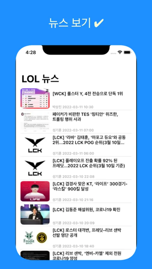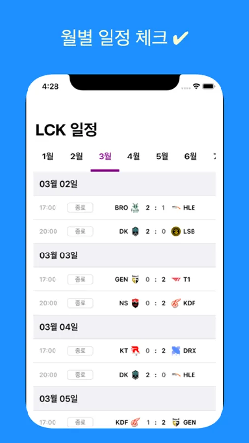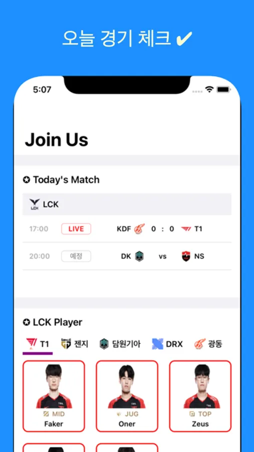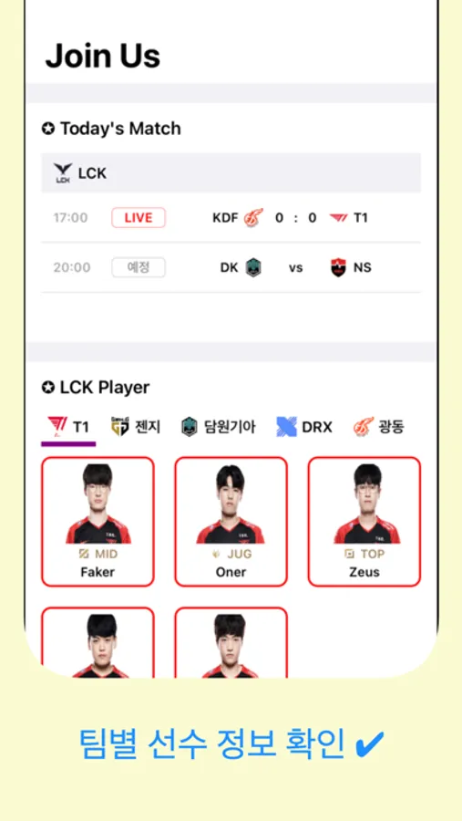 # LCK 리그 금일 경기 일정과 선수 정보 제공