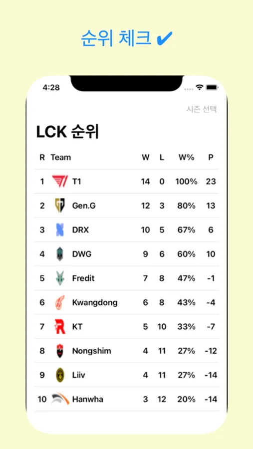시즌을 선택하면 해당 시즌의 순위를 확인할 수 있어요