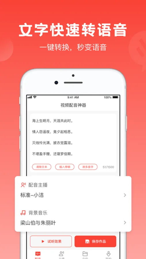 1.一键语音合成:输入文字秒转语音,智能语音合成。