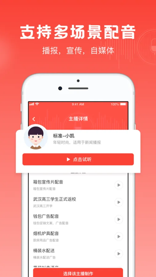 4.广播播音:地铁,车站,商场,景区等的公共场所宣传配音。
