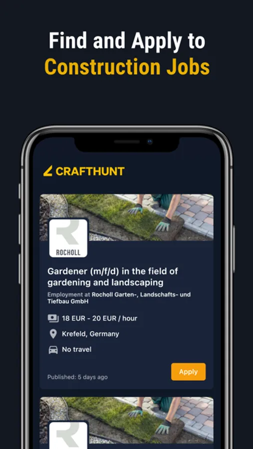 Crafthunt is THE app for skilled construction workers and reputable construction companies. We are a platform where construction workers get the best construction jobs offered without having to search for them. The workers stay anonymous as long as they want.