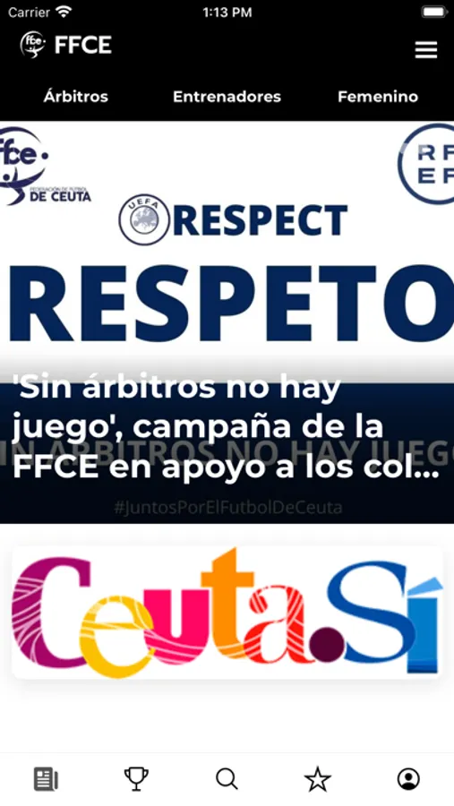 Aplicación oficial de la Real Federación de Fútbol de Ceuta. Con ella, puedes acceder de manera intuitiva a las últimas noticias, resultados, clasificaciones y mucho más.