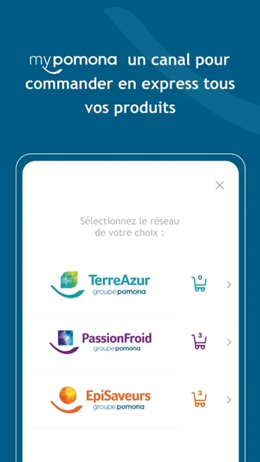 ⎯ Sélectionnez le réseau de votre choix (PassionFroid, EpiSaveurs, TerreAzur) sur lequel vous souhaitez passer votre commande.