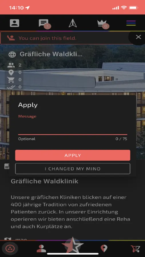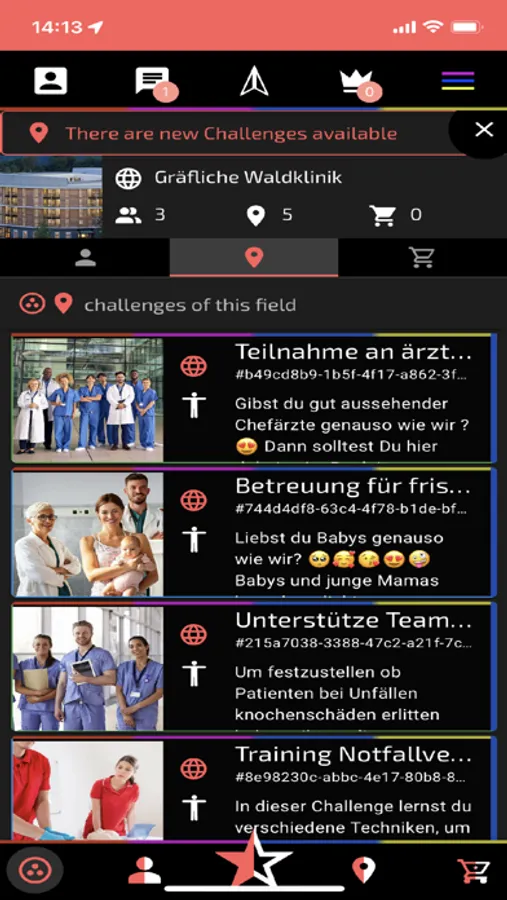 The long-awaited supervision of a new world is about to start: 1APP is here. Simple game - big effect: Neighborhoods, clubs and companies become "fields". Tasks become "Challenges". Money becomes "points". Goods become "deals". You can create and fulfill "Challenges" on fields, get points for this and you can use points to buy "deals". In short: "1APP" is a scientifically developed, utopian social model that works independently, without money.