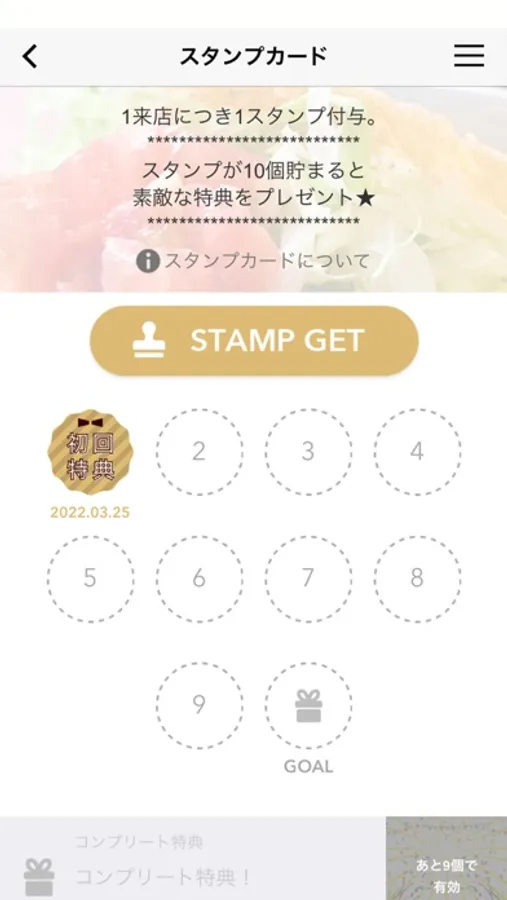・ご来店ごとにたまるスタンプカード。