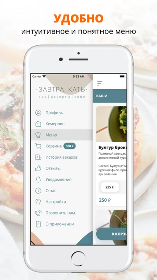 Приложение «Завтра, Кать» | Кемерово— это удобный способ заказа еды домой или в офис! Мы готовим наши блюда из качественных свежих ингредиентов и доставляем еду быстро и бережно.