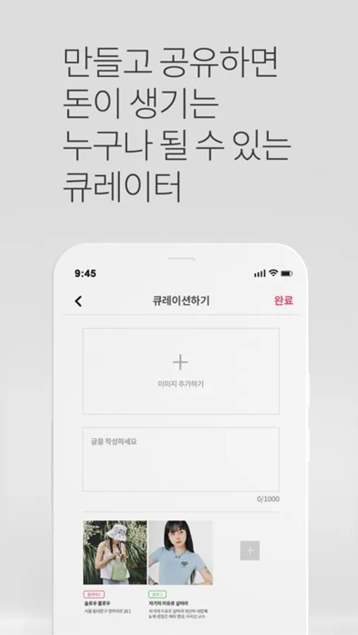 내 취향에 딱 맞는 큐레이션, 아이템 등을 SNS로 친구에게 공유하고