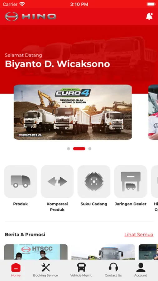 Fitur yang tersedia pada aplikasi My HINO antara lain: