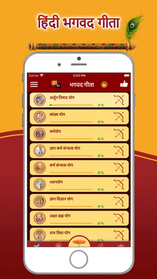 1. Complete 18 Chapters: Access all 18 chapters of Bhagavad Gita, comprising 700 slokas, offering invaluable insights into life's fundamental truths.