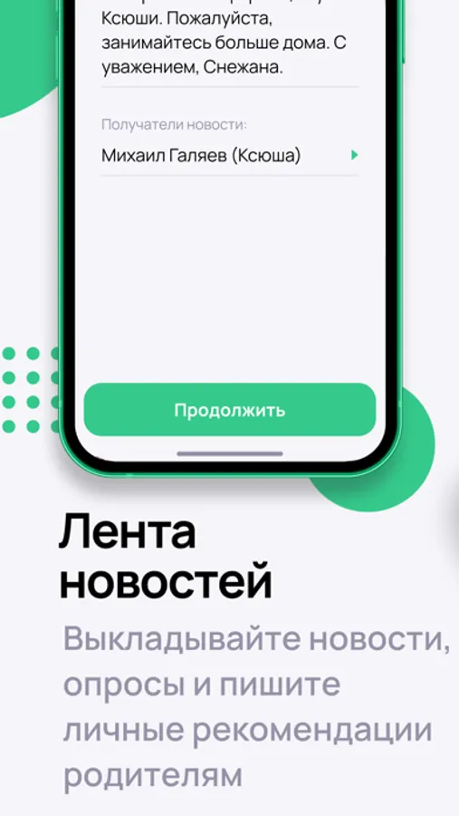 - Новостная лента с персональными рекомендациями от воспитателей.