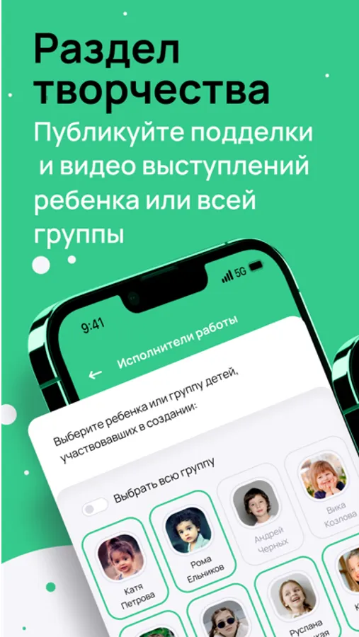 - Раздел с творчеством детей, где формируется портфолио ребенка.