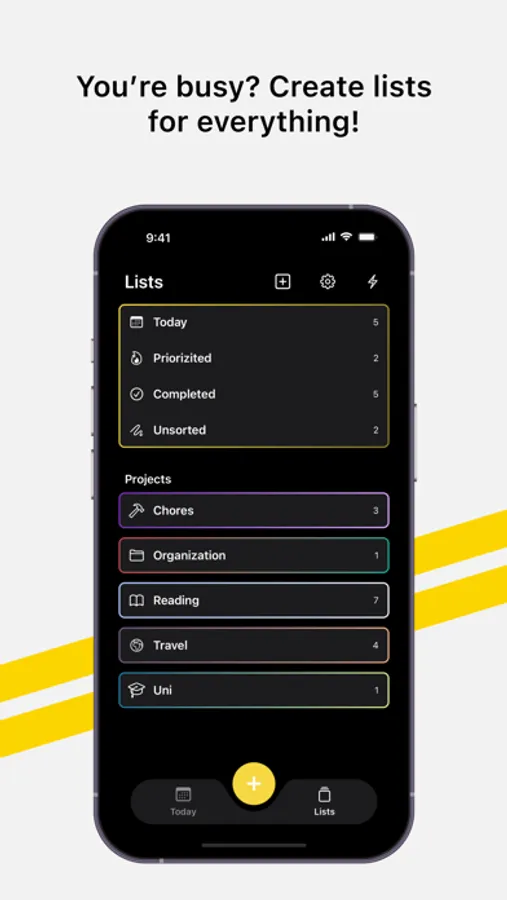 • Personalize lists with icons and colors