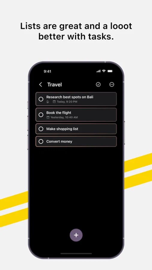 With Almost Done you can easily create tasks and check them off on your iPhone, iPad and Mac in sync. Or maybe just create a shopping list? No problem!