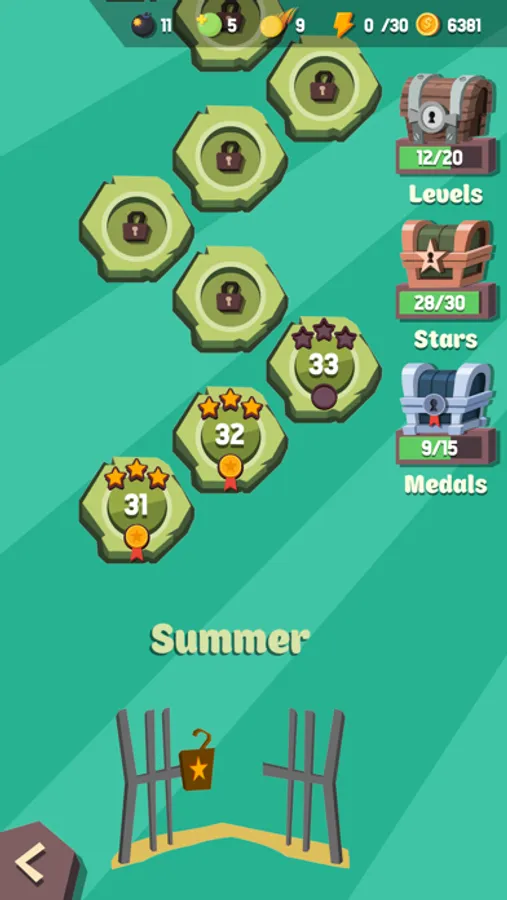 - Open 3 different chests, which are filled when passing levels, collecting stars and receiving medals.