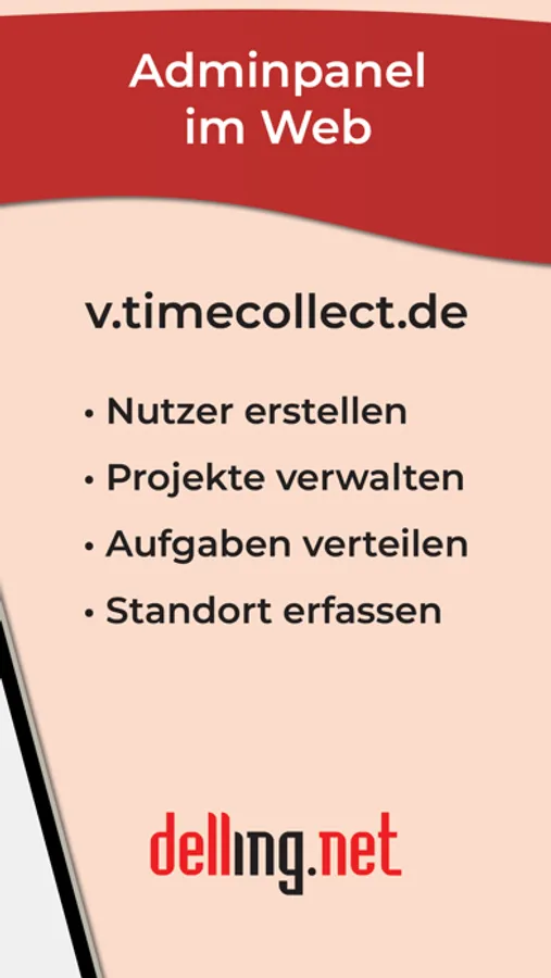 Unter https://v.timecollect.de/ ist es möglich Benutzer, Projekte und Zuordnungen anzulegen.
