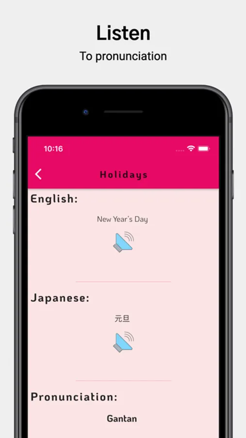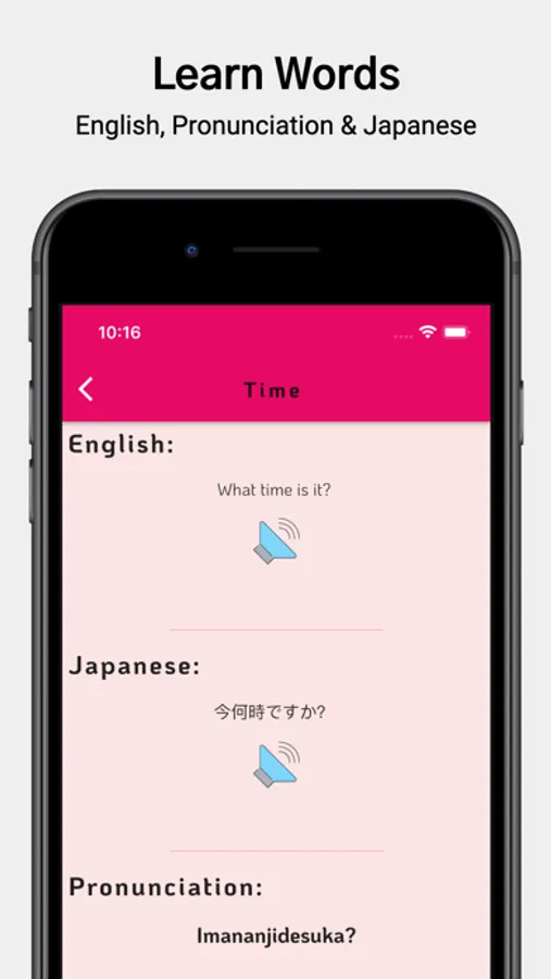 • In every lesson, you can listen to the Japanese word pronunciation as well as see Japanese word in english language.