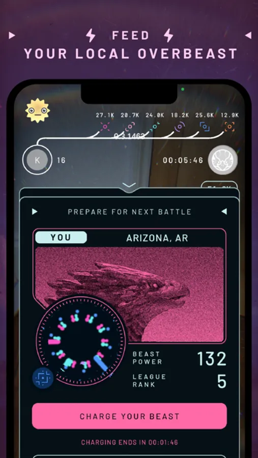 See the majestic overbeast that lives in your state, through your AR camera. Feed the Overbeast together with your community, helping it to grow strong