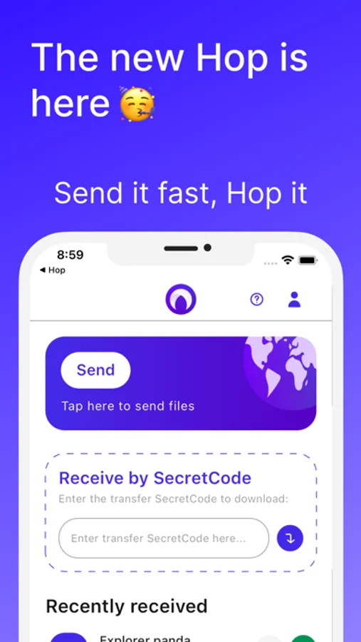Say goodbye to tedious messages with cumbersome links for file sharing. With Hop, all you need is your personal code to swiftly send and receive files hassle-free.
