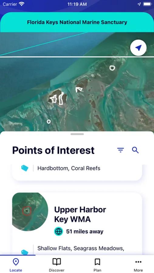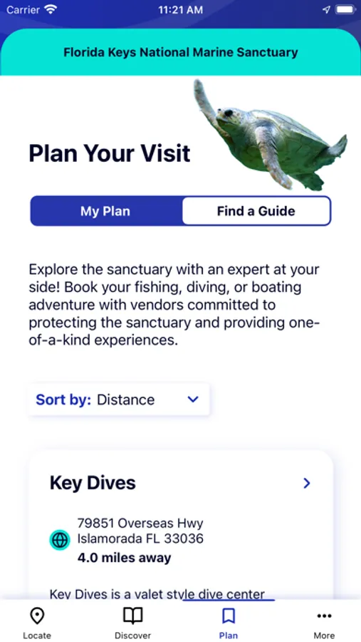 Before you arrive, download the app to discover points of interest throughout the sanctuary, including coral reefs, shipwrecks, lighthouses, and more. Bookmark new spots to explore, create a travel plan, or find a local guide for specialized experiences like sunset cruises, diving, and fishing trips.