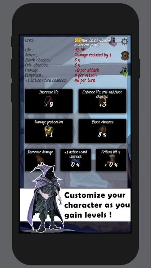 - Gain levels and customize your character