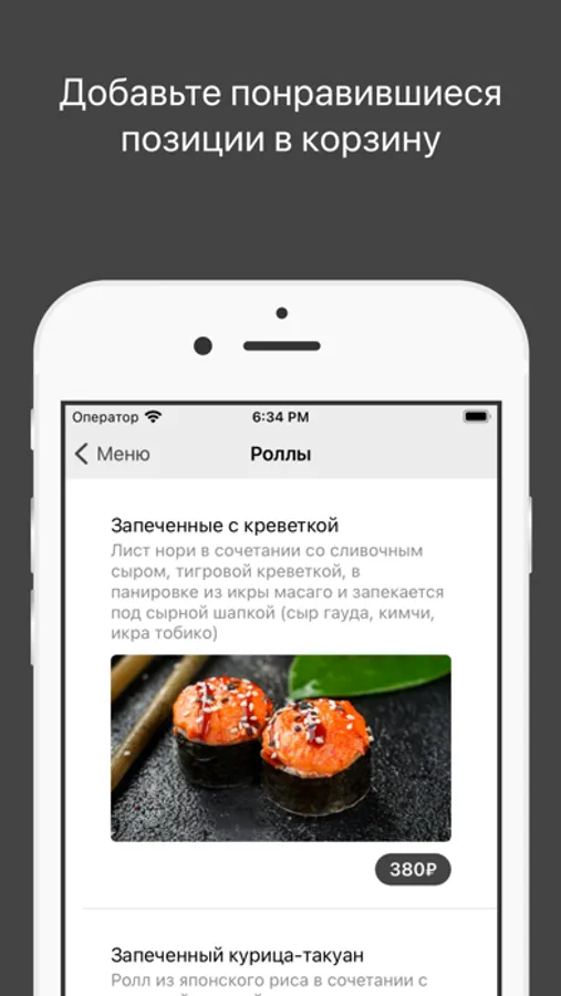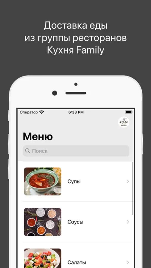 Как сделать заказ в приложении «Кухня Family»: выберите понравившиеся позиции из меню, добавьте их в корзину и перейдите на экран оформления заказа (по нажатию на иконку корзины).