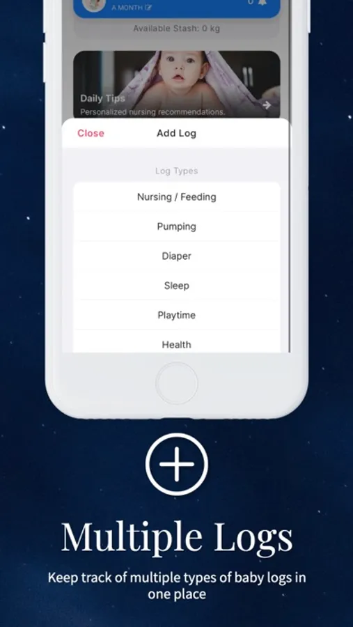 As a bonus, you can also track your nursing and pumping, your amounts of milk pumped and saved (your stash), your baby's sleep, diapers, feeding, playtime, growth, and health (including temperature, medicines, and symptoms), as well as create a gallery of photos that you can associate with your baby's milestones.