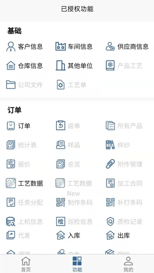 明天袜业软件功能包括:生产工艺管理,生产订单管理,物料采购计划管理,原料/辅料/配件库存管理,半成品库存管理,生产进度和质量管理,人事工资管理,销售订单和发货管理,应收应付款管理。每一项功能都针对袜业行业特点开发。